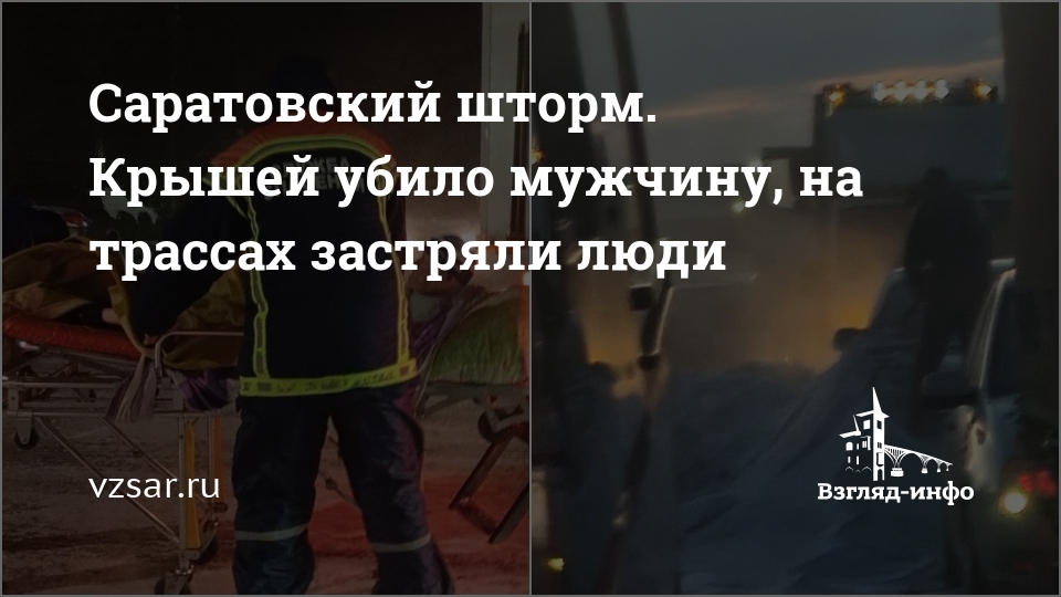 Саратовский шторм. Крышей убило мужчину, на трассах застряли люди