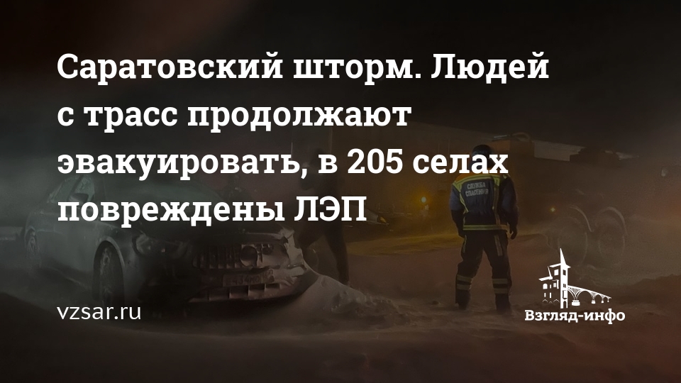 Саратовский шторм. Людей с трасс продолжают эвакуировать, в 205 селах повреждены ЛЭП
