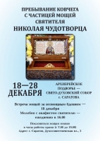 Начиная с предстоящего четверга, 18 декабря, в Свято-Духовском соборе Саратова (Духосошественская площадь, 3 в Волжском районе) можно будет поклониться мощам святителя Николая Чудотворца.