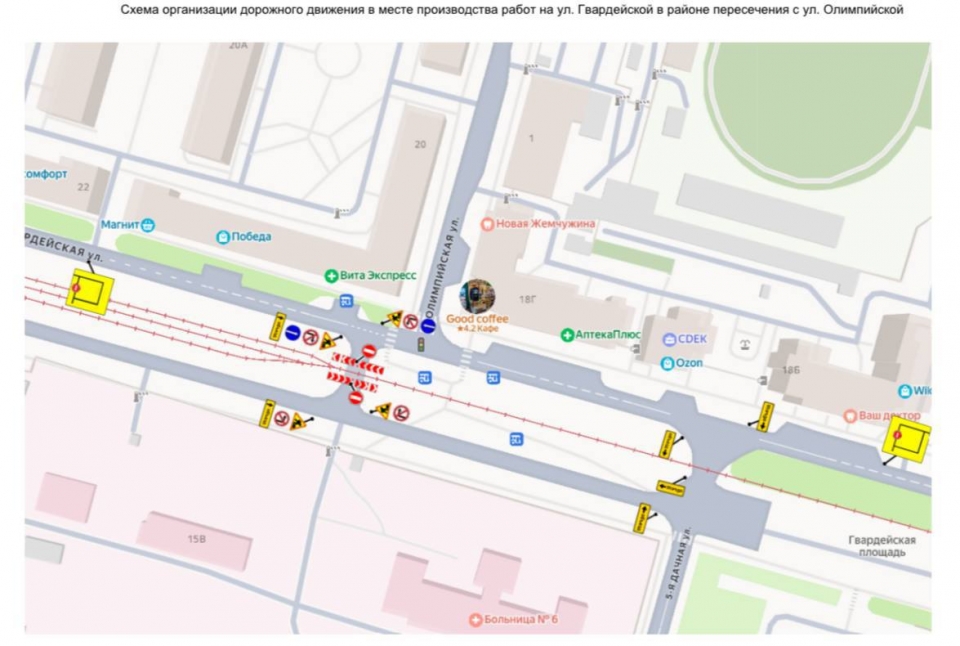 - улица Гвардейская (в районе пересечения с Олимпийской);