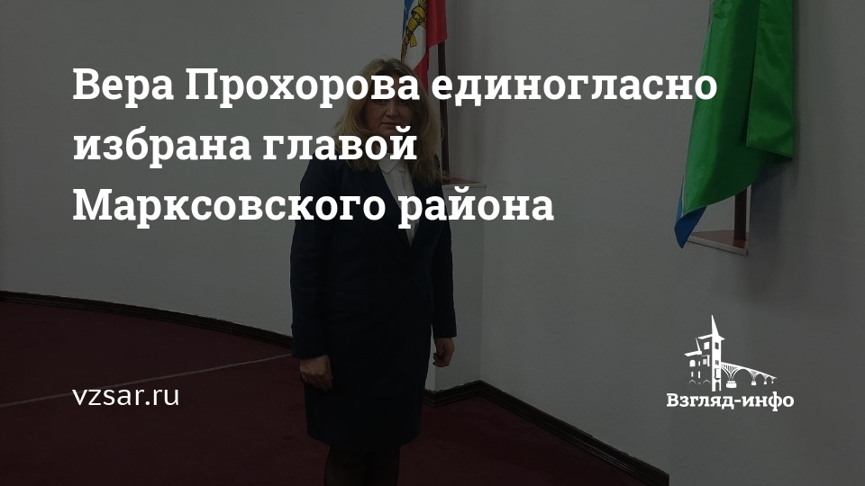 Главой Марксовского района Саратовской области избрана Вера Прохорова. Об этом сообщает министерство по делам территориальных образований региона.