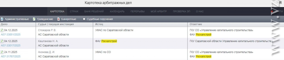 Согласно картотеке саратовского арбитража, по двум искам региональное УФАС требует признать недействительными контракты на 468 млн и на 1 млрд 304 млн рублей, заключенных с УКС 18 ноября 2022 года.
