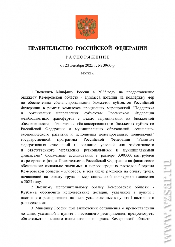 Речь, в том числе, идет о расходах на оплату труда работников угольной промышленности и бюджетной сферы, обеспечение мер социальной поддержки граждан, реализацию социально значимых инфраструктурных проектов.