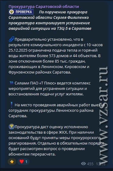 Полчаса назад региональная прокуратура уведомила о том, что на ТЭЦ-5 произошла "аварийная ситуация". И в результате "коммунального инцидента" с десяти утра оказалась "ограничена подача тепла и горячей воды жителям более 573 домов и 44 объектов".