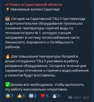 Как пояснила компания, на ТЭЦ-5 при переходе на дополнительное оборудование произошло снижение температуры горячей воды по тепломагистрали № 1 (станция греет части Ленинского, Кировского и Октябрьского районов).