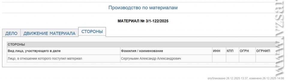 Согласно картотеке райсуда, в СИЗО отправлен Александр Сергунькин. Он является уроженцем Энгельса, но проживает, в основном, в Санкт-Петербурге, где, согласно открытым источникам, предоставляет услуги по ремонту, позиционируя себя в качестве "мастера на все руки".