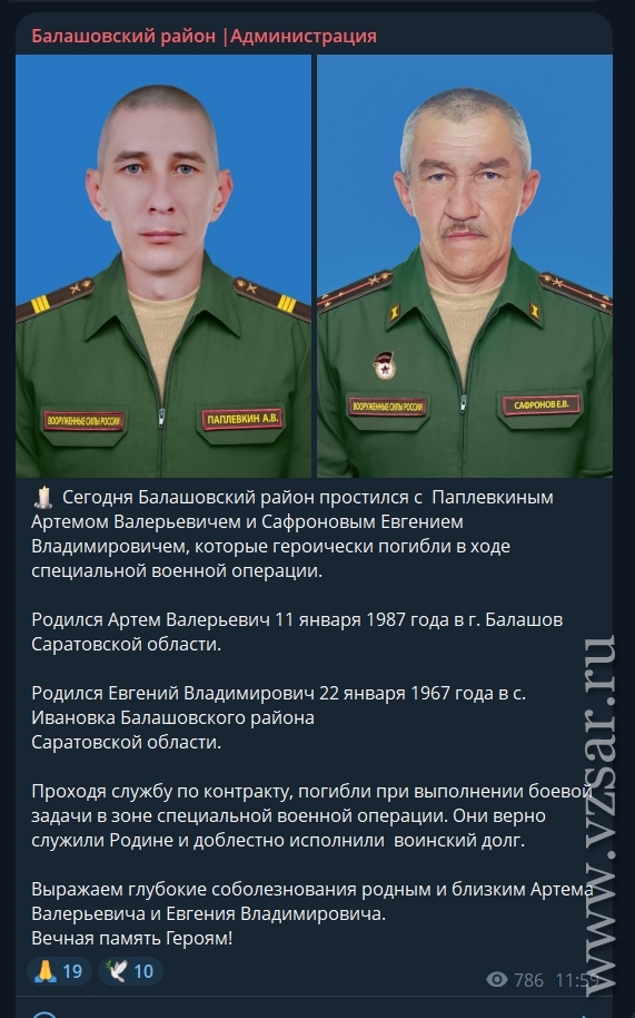 Администрация Балашовского района рассказала о прошедшем сегодня прощании с погибшими Артемом Паплевкиным и Евгением Сафроновым.