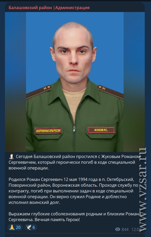 Администрация Балашовского района рассказала, что сегодня прошло прощание с Романом Жуковым.