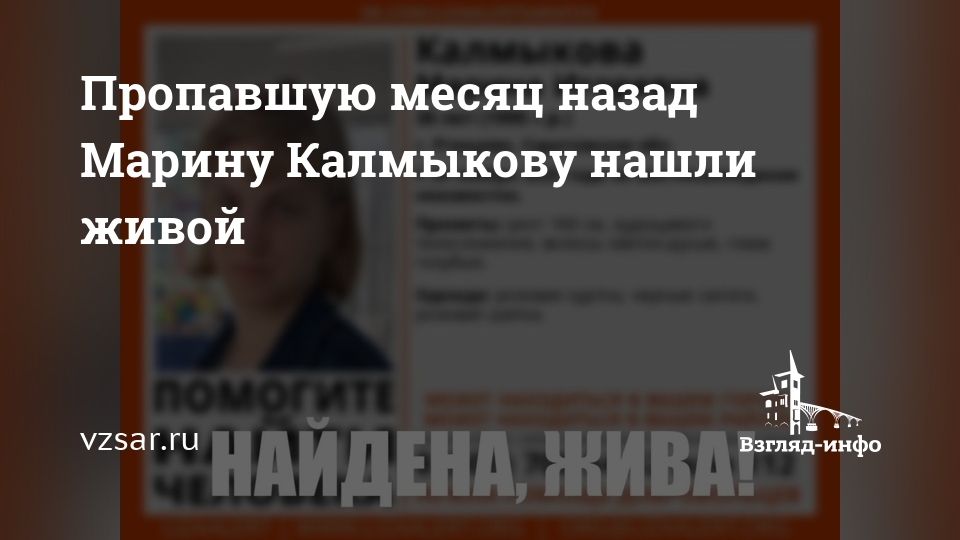 Пропавшую месяц назад Марину Калмыкову нашли живой