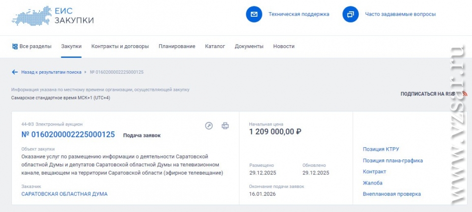 Саратовская облдума (спикер - Алексей Антонов) объявила очередной аукцион на освещение своей работы на ТВ. Соответствующая информация размещена на сайте "Госзакупки".