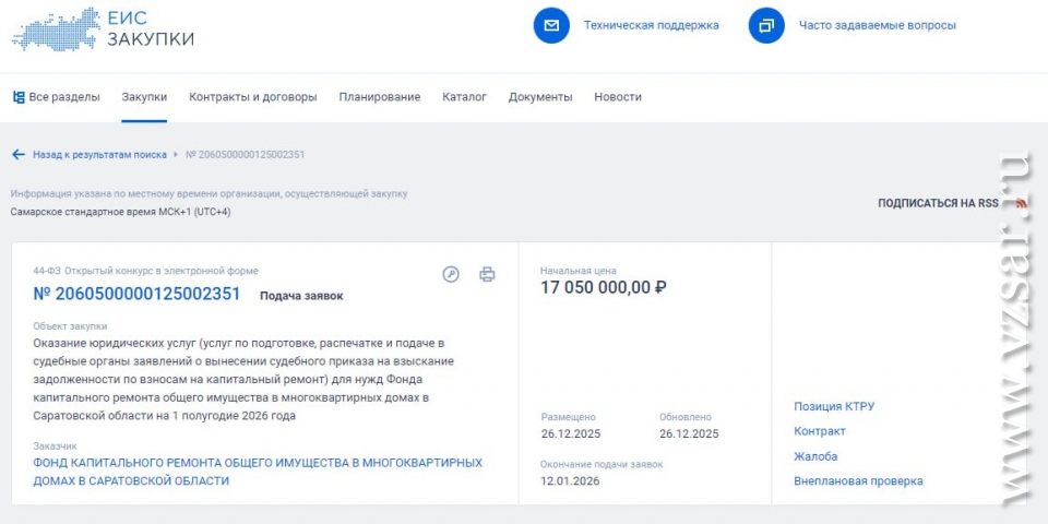 Фонд капитального ремонта Саратовской области (возглавляет Юлия Вихляева) объявил ежегодный предновогодний конкурс на оказание юридических услуг.