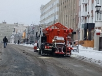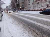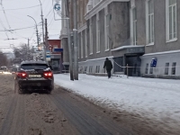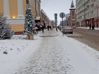 Не столь загруженные улицы типа Советской и Челюскинцев прибраны немного хуже, а вот небольшие улочки - Соборная, Некрасова, Комсомольская практически были лишены внимания снегоуборочных бригад. Видно, что техника прошла, но это было давно. На подъеме в снежной каше вполне можно забуксовать.