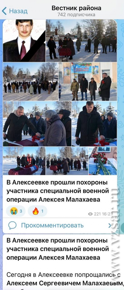 Так, Базарно-Карабулакское издание "Вестник района" сообщило о состоявшихся прощаниях с Андреем Городинским и Алексеем Малахаевым.