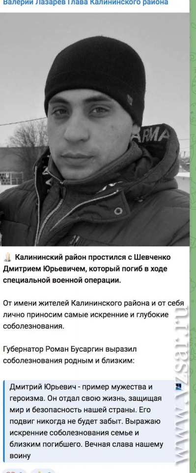 Глава администрации Калининского района Валерий Лазарев сообщает о состоявшемся прощании с Дмитрием Шевченко.
