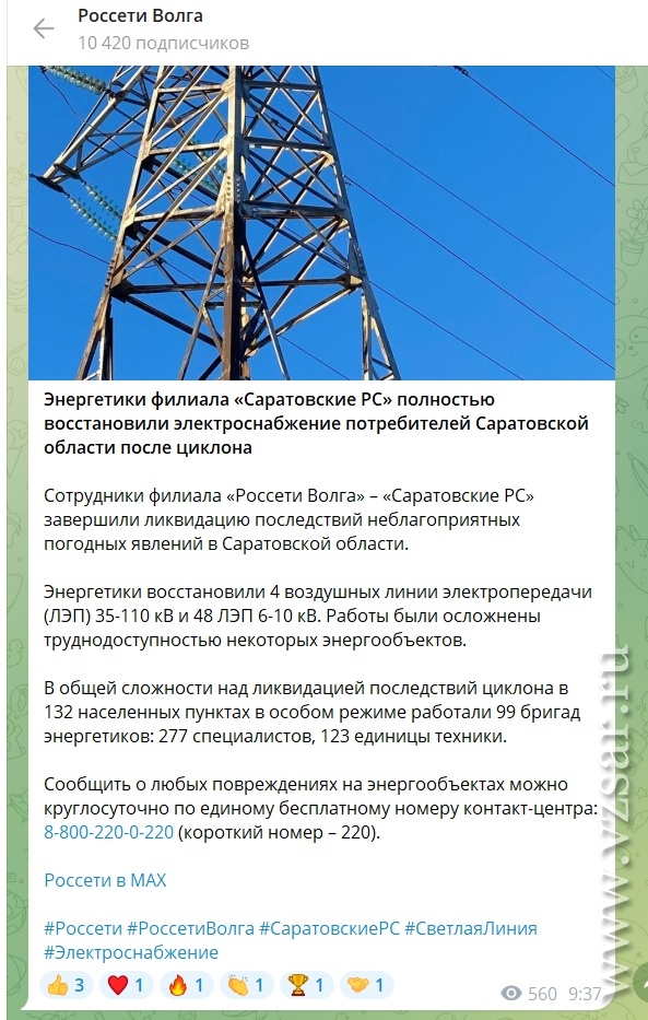 Из-за мощного циклона в Саратовской области без электроэнергии оказались жители, по меньшей мере, 132 населенных пунктов, сообщает сегодня ПАО "Россети Волга".