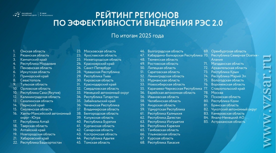 Такие данные приводит Российский экспортный центр (государственный институт, входящий в Группу ВЭБ.РФ), сформировавший рейтинг регионов по внедрению Регионального экспортного стандарта 2.0 (РЭС 2.0), который является целевым показателем нацпроекта.
