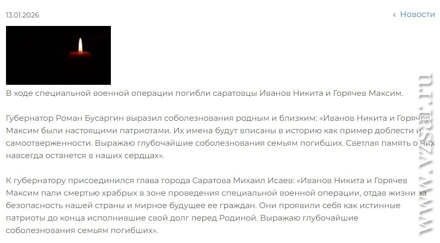 Также администрация Саратова, как обычно без подробностей, сообщила о гибели Никиты Иванова и Максима Горячева.