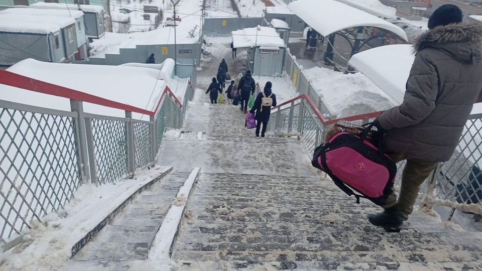 "Мы с мужем прибыли из Уральска 11 января поездом "Алматы - Саратов" в 12 часов 10 минут по местному времени. Нас просто повергло в шок состояние лестницы, по которой нужно подниматься на мост на железнодорожном вокзале Саратова. Девушка, которая шла впереди нас, очень сильно упала на лестнице и проехалась вниз ступенек пять-шесть. Вероятно, она сильно травмировала спину.