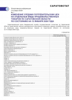 На 12 января средняя цена сахара-песка в регионе составляла 61,87 руб./кг, муки – 51,12 руб./кг, десяток яиц – 81,67 руб., масла подсолнечного – 138,20 руб./л, масла сливочного – 1138,63 руб./кг, сметаны – 376,15 руб./кг, кур охлажденных и мороженых – 213,36 руб./кг, капусты – 30,76 руб./кг, свеклы – 35,27 руб./кг, лука – 36,77 руб./кг, картофеля – 38,49 руб./кг, макарон – 87,60 руб./кг, огурцов – 198,25 руб./кг, помидоров – 199,55 руб./кг, бананов – 161,50 руб./кг.