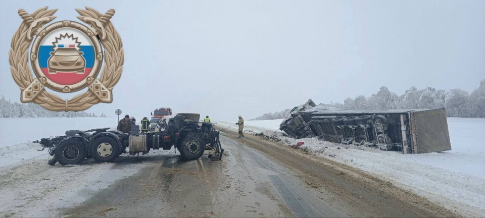 По предварительным данным, вблизи села Первомайское в 11.00 столкнулись "Камаз" под управлением 32-летнего водителя и "Ман" с 51-летним мужчиной за рулем.