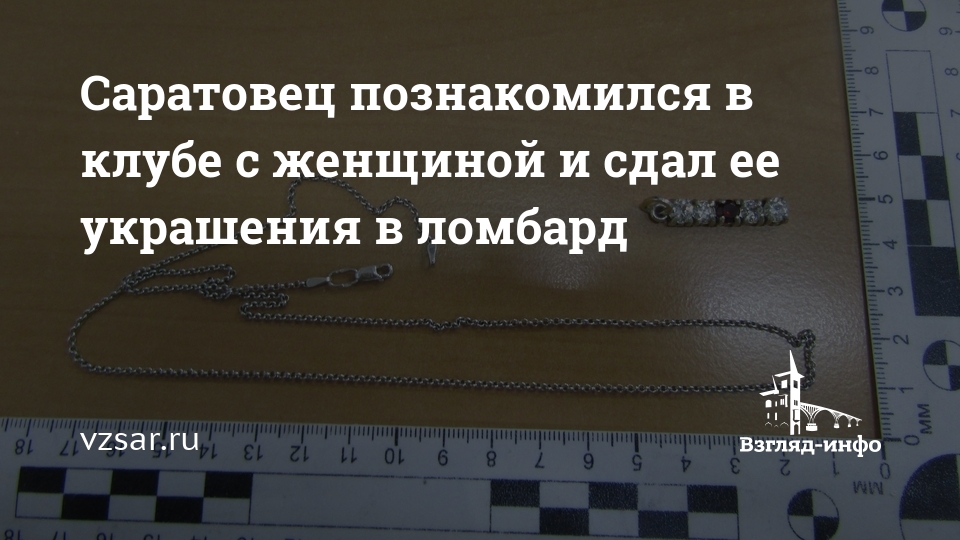 Саратовец познакомился в клубе с женщиной и сдал ее украшения в ломбард
