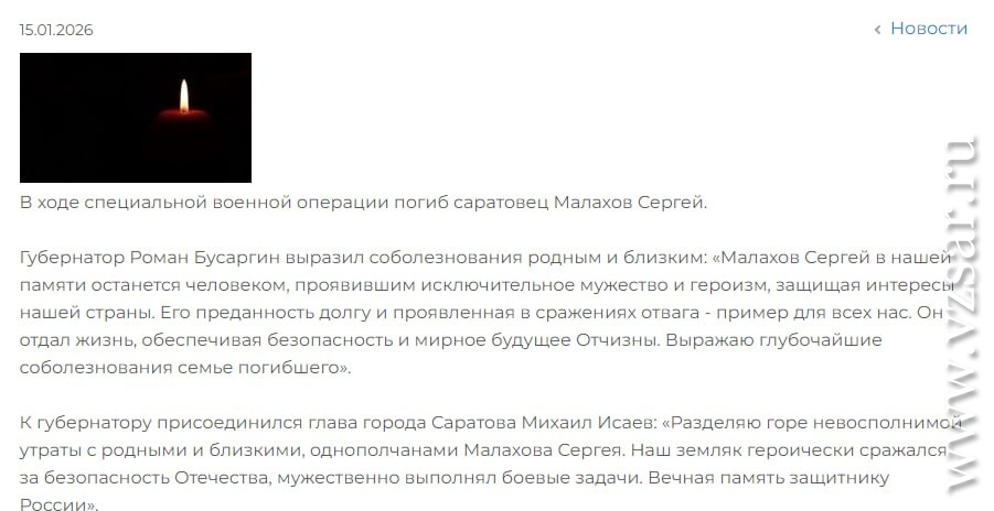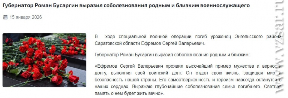 Администрация Энгельсского района сообщает о гибели Сергея Ефремова, а мэрия Саратова – о смерти Сергея Малахова.