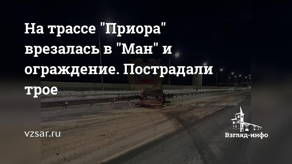 На трассе "Приора" врезалась в "Ман" и ограждение. Пострадали трое