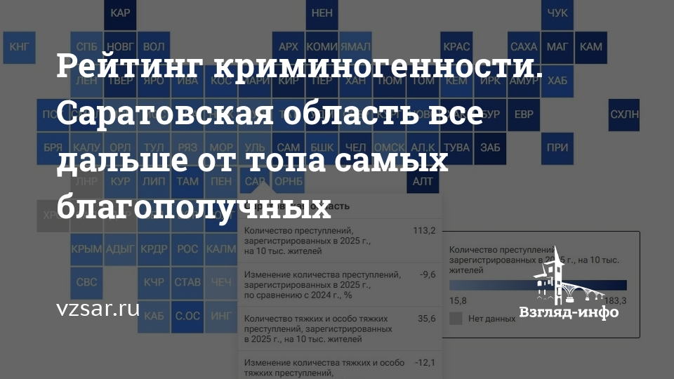 По итогам 2025 года Саратовская область потеряла еще несколько позиций в рейтинге благополучия регионов по уровню преступности. Такие данные содержатся в аналитическом исследовании, опубликованном сегодня РИА Новости.
