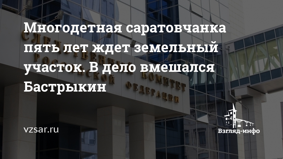 Председатель Следственного комитета РФ Александр Бастрыкин обратил внимание на жалобу саратовской многодетной семьи о затягивании вопроса с предоставлением ей земельного участка.