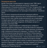 Газета "Петровские вести" рассказала о прощании с ефрейтором Артемом Алиевым.