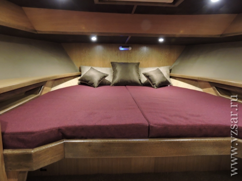 Плюс на судне: отдельная носовая каюта с двумя спальными местами, душ, санузел, камбуз с холодильником, морозилкой, газовой плитой, вытяжкой, мойкой и кухонным гарнитуром из натурального дерева твердых пород, систем вентиляции, кондиционирования и отопления и других удобств.