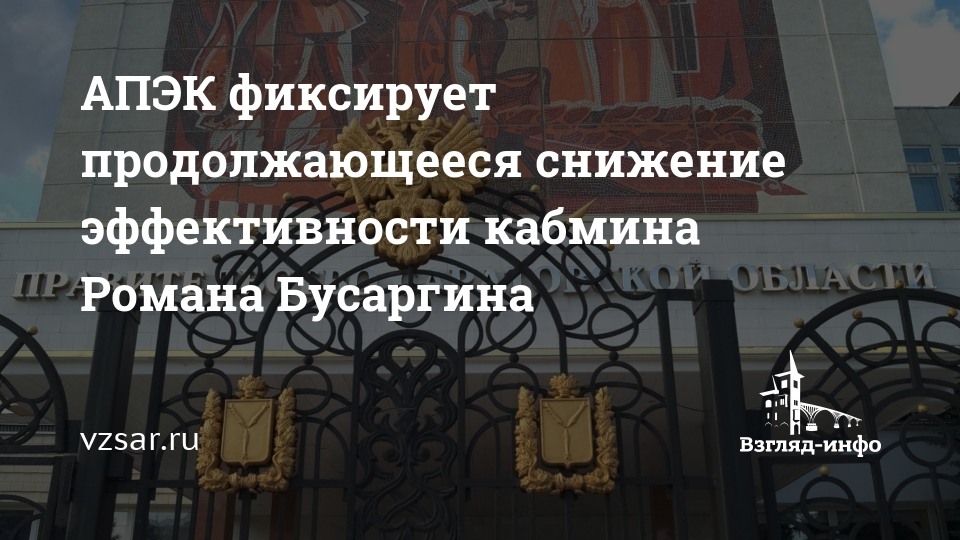 АПЭК фиксирует продолжающееся снижение эффективности кабмина Романа Бусаргина