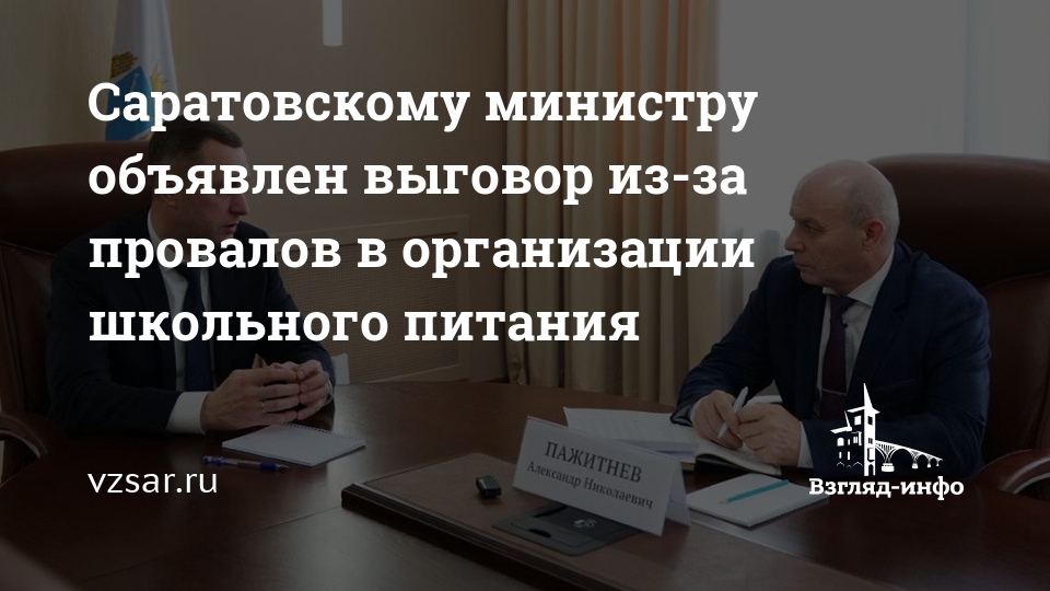 Саратовскому министру объявлен выговор из-за провалов в организации школьного питания