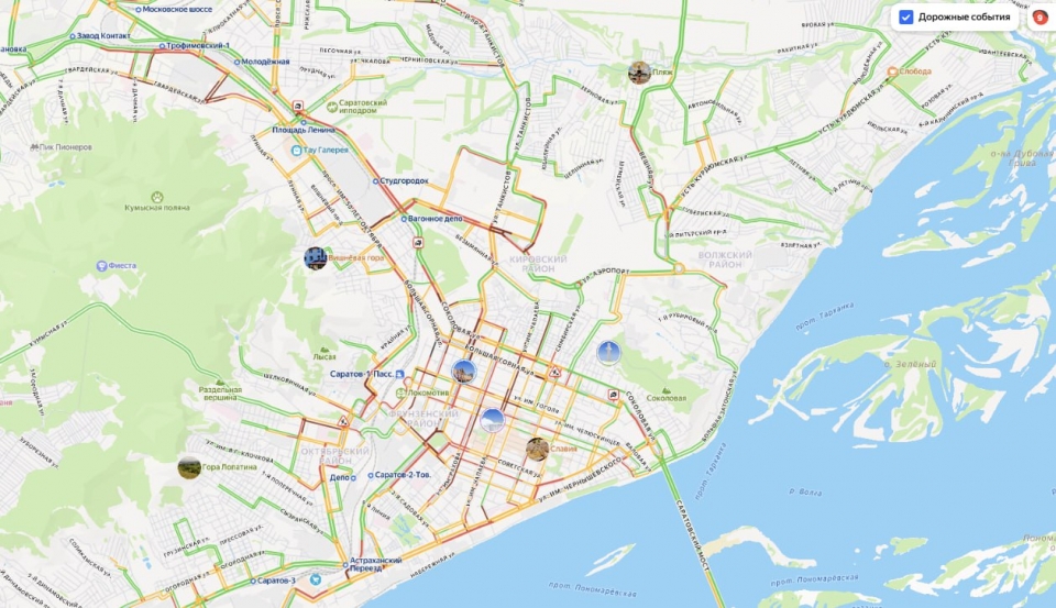 В красный цвет сервис окрасил большую часть центра Саратова.