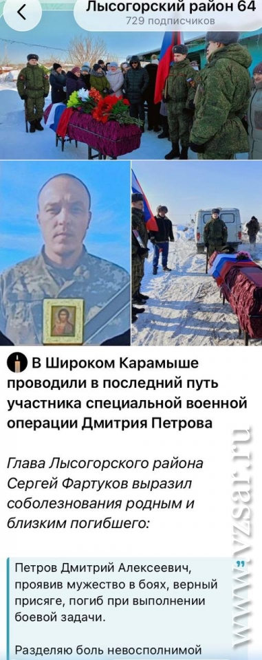 Администрация Лысогорского района рассказала, что состоялось прощание с Дмитрием Петровым, погибшим при выполнении боевой задачи.