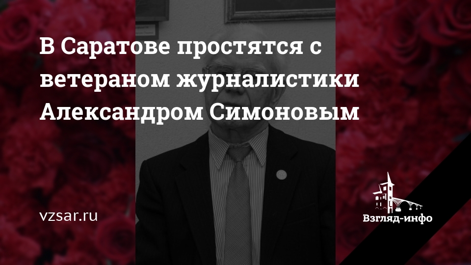 Сегодня в Саратове в последний путь проводят ветерана местной журналистики Александра Симонова. О его кончине, последовавшей позавчера на 97-м году жизни, рассказало региональное отделение СЖР.