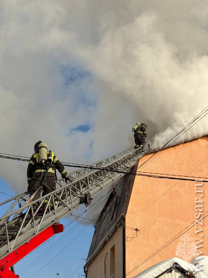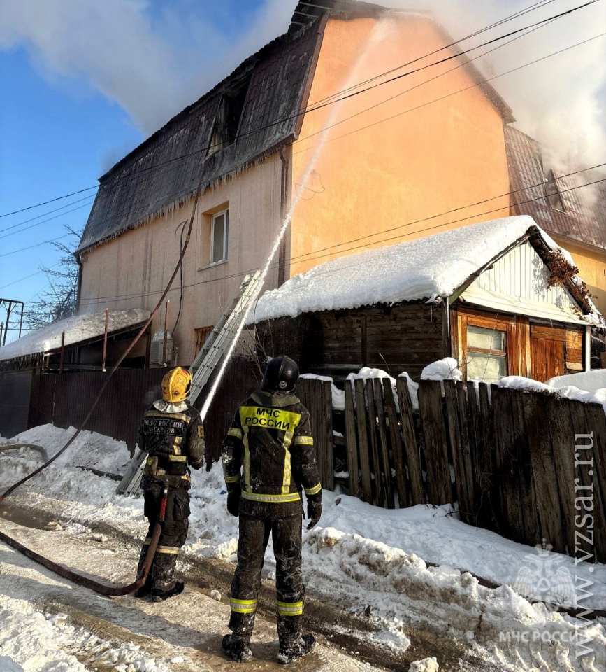 В 11.32 поступил сигнал о пожаре на улице Большая Затонская, 104. На площади 150 кв. метров там горел частный двухэтажный дом.