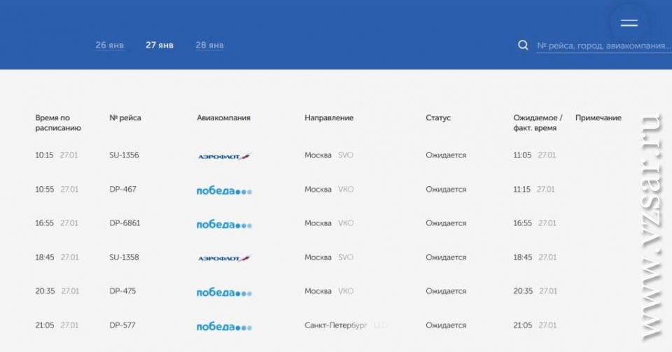 На данный момент в Саратов задержаны прилеты рейсов Аэрофлота (из аэропорта Шереметьево) и авиакомпании "Победа" (из аэропорта Внуково).