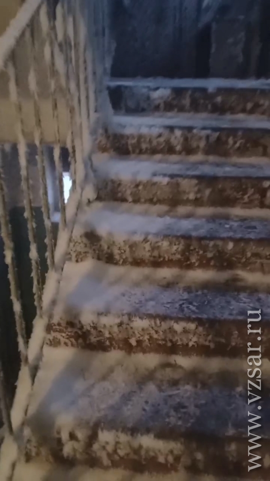 На представленных ею кадрах видно, что подъезд находится не только в ужасном состоянии, но и промерзает изнутри: ступени завалены снегом, стены покрыты инеем.