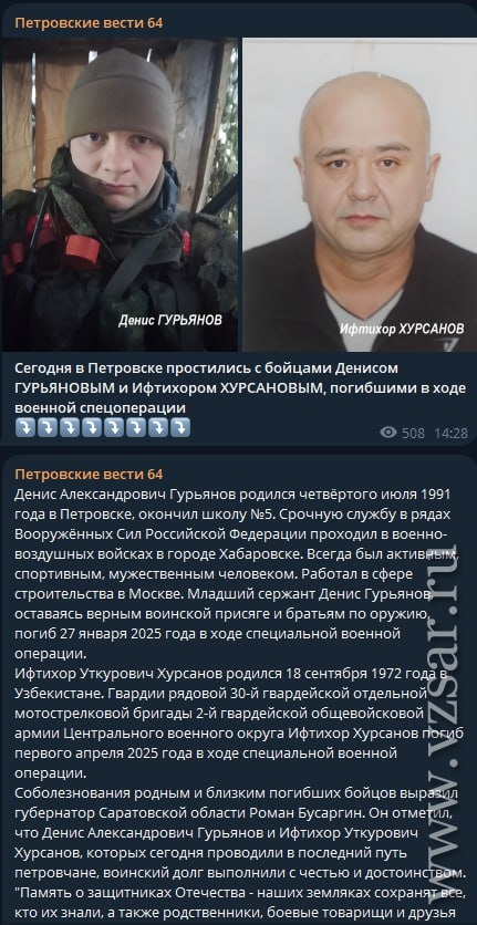 Ифтихор Уткурович родился 18 сентября 1972 года в Узбекистане. Гвардии рядовой 30-й гвардейской отдельной мотострелковой бригады погиб 1 апреля 2025 года. О погибших написала районная газета "Петровские вести".