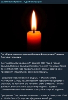 Администрация Балаковского района сообщает о гибели Олега Романова.