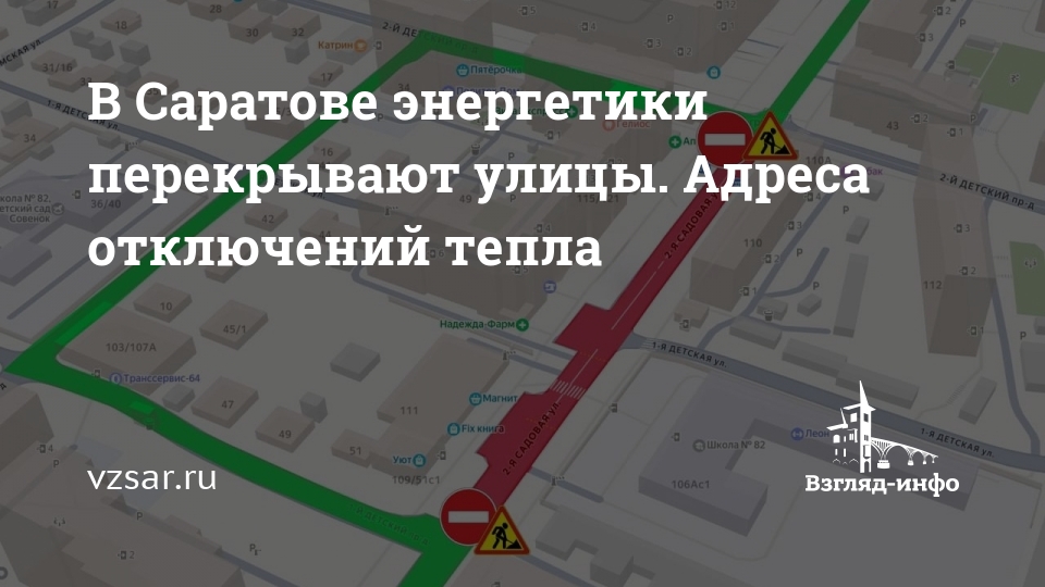 Как сообщает региональный филиал "Т Плюс", для ремонта теплосети на 2-й Садовой с 09:00 до 21:00 субботы перекрывается участок от 1-й Детской до 2-го Детского проезда.