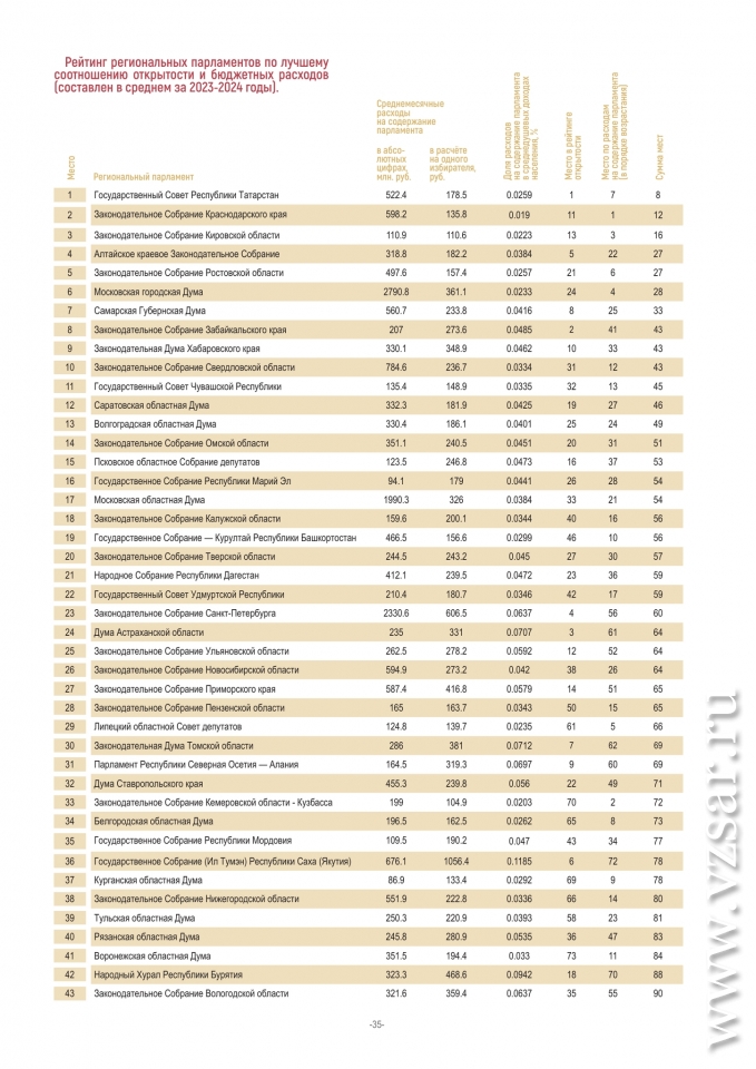 Худшим в рейтинге стал занявший 85-е место Верховный Хурал Тывы.