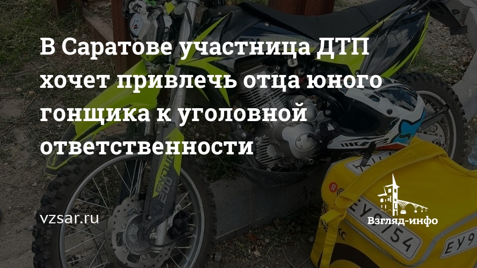 Теперь же вторая участница ДТП хочет, чтобы в отношении отца несовершеннолетнего водителя мотоцикла было возбуждено уголовное дело по ч. 1 ст. 151.2 УК РФ (вовлечение несовершеннолетнего в совершение действий, представляющих опасность для жизни несовершеннолетнего).