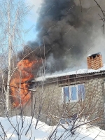 "В 11.45 - локализация пожара на площади 180 кв.м. Дом трехквартирный. Информации о пострадавших не поступало", - добавили в ГУ МЧС.