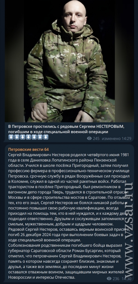 Издание "Петровские вести" рассказало о прошедшем прощании с погибшим Сергеем Нестеровым.