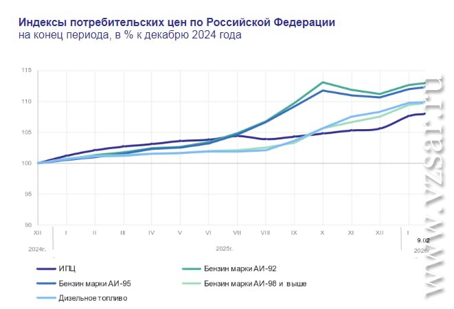 С 3 по 9 февраля рост цен на бензин автомобильный был зафиксирован в 61 субъекте Российской Федерации.
