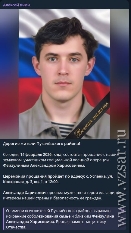 И сегодня же в пугачевском селе Успенка похоронили Александра Фейзулина. О гибели Александра Харисовича написал глава района Алексей Янин.