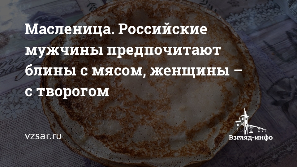 Масленица. Российские мужчины предпочитают блины с мясом, женщины – с творогом