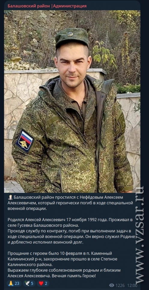 Администрация Балашовского района рассказала о прошедшем прощании с Алексеем Нефедовым.